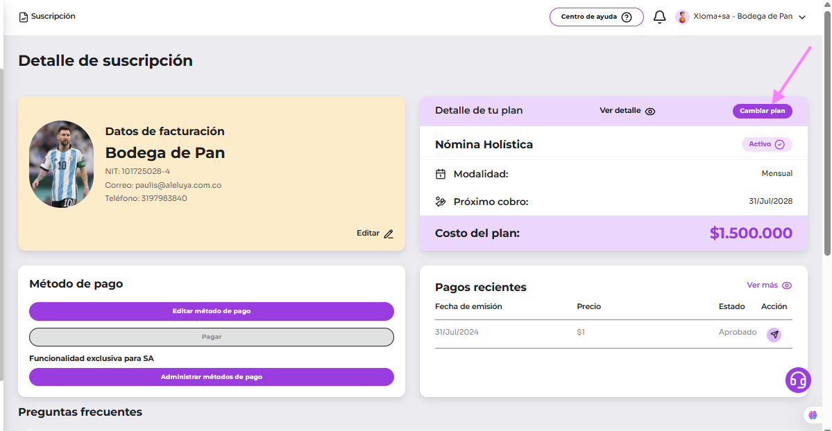 ¿Tu empresa creció? ¿Necesitas más funcionalidades? ¿O simplemente quieres otro plan que se ajuste mejor a lo que estás viviendo hoy? Relax. Cambiar tu plan en Aleluya es más fácil que liquidar nómina en 5 minutos (y ya sabes que eso es MUY fácil 😉).