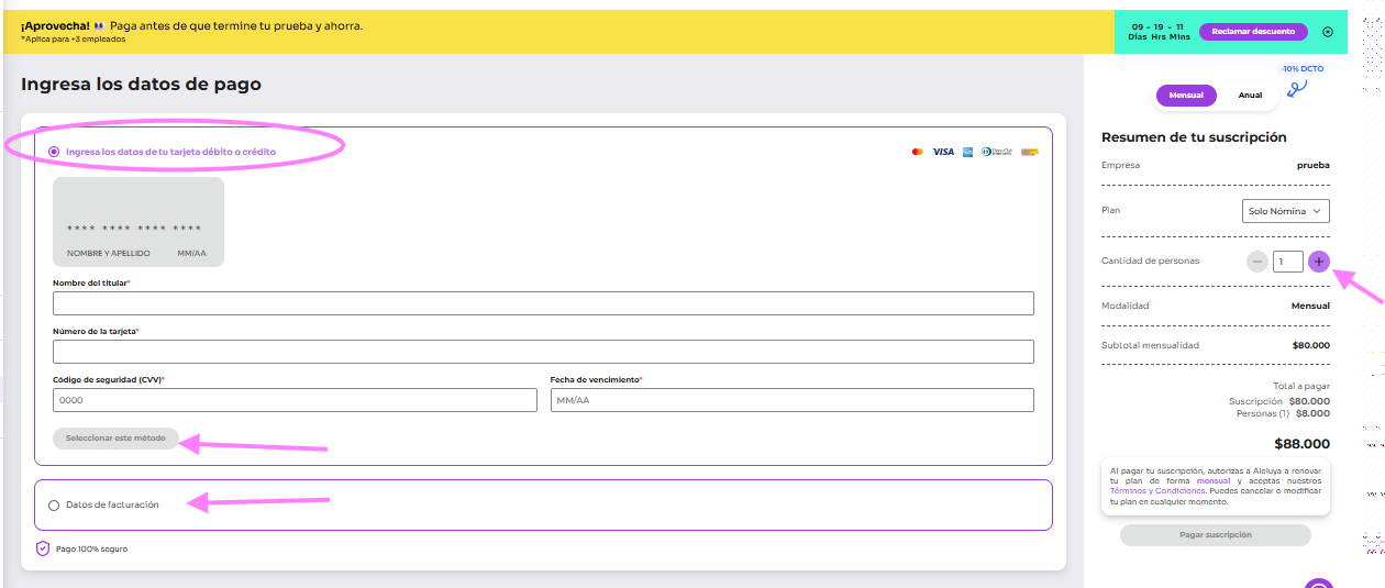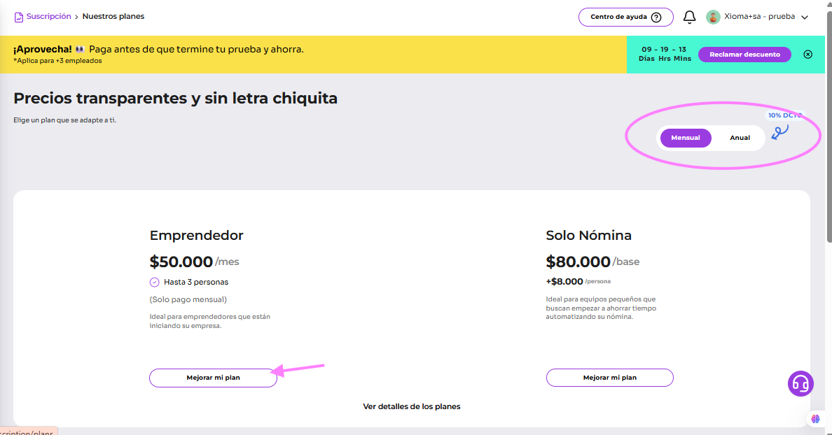 Si aún estás en periodo de prueba o quieres activar tu plan pago, sigue estos pasos: