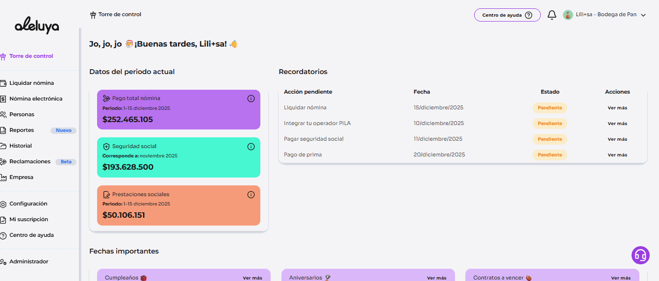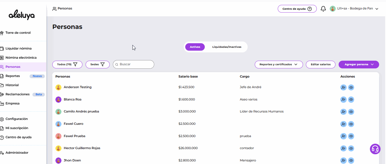 ¿Cuándo desactivar a una persona? Aleluya no tiene la figura de sustitución patronal, pero, sí en algún momento tuvieras un empleado que pasó a otra razón social, se desactiva en la empresa 1 para que deje de salir en las nóminas y se cree en la segunda empresa para permanezca su histórico en la otra empresa. O sí aún no tienes toda la información que requieres para proceder con la liquidación en Aleluya.