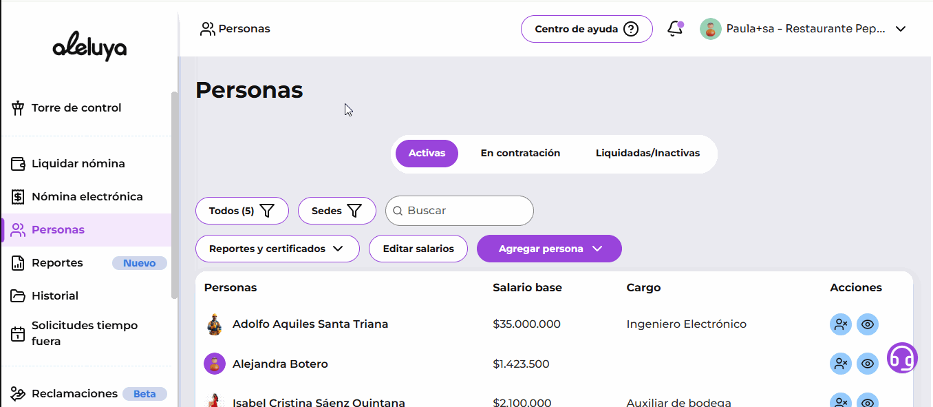 Activa o desactiva empleados en Aleluya en un par de clics 🤞