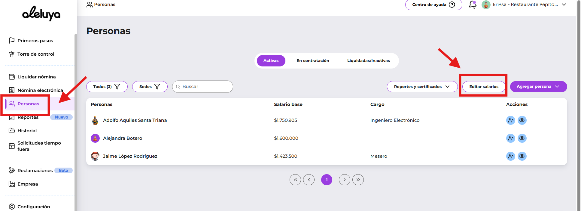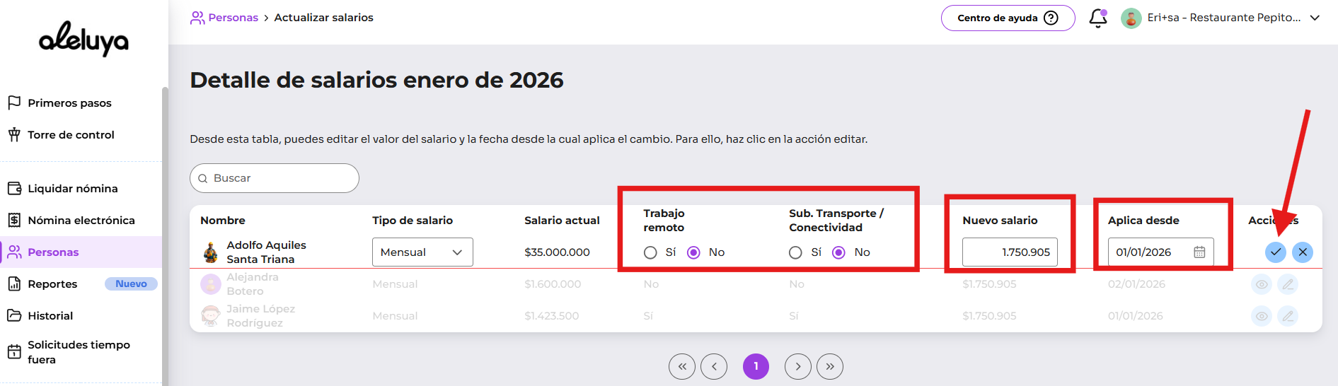 🎉 ¡Y listo! Con Aleluya, actualizaste de manera masiva los salarios de tu equipo. 💜