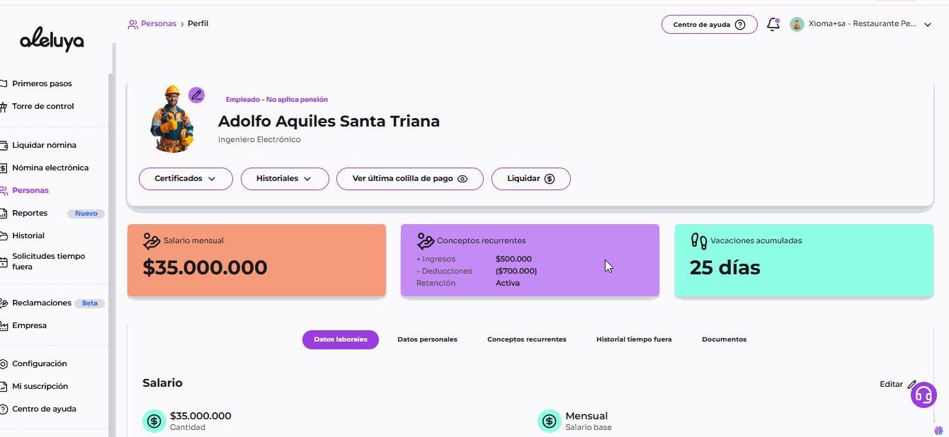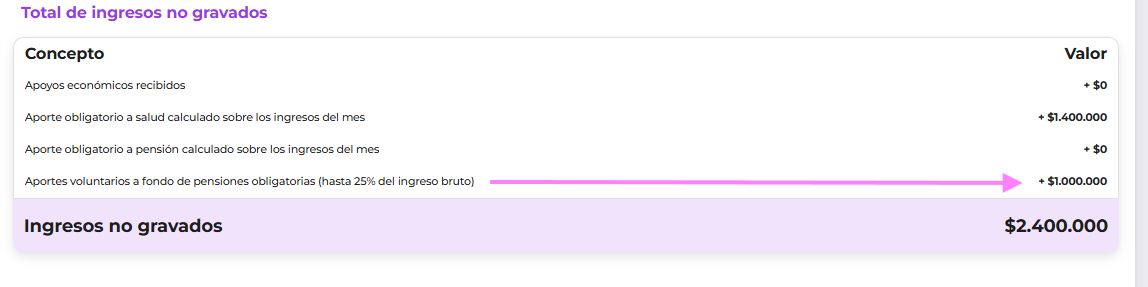 Si el empleado tiene deducciones como Aportes voluntarios a fondo de pensiones obligatorias (hasta 25% del ingreso bruto, debes agregarlas en la sección de conceptos recurrentes en Deducciones y préstamos.
