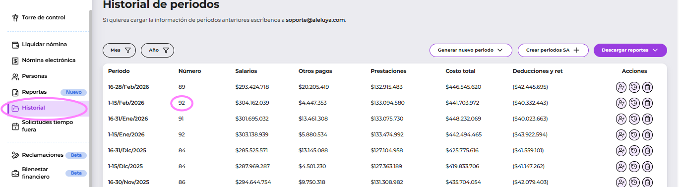 - El número de personas a las que les liquidaste nómina en el período anterior.