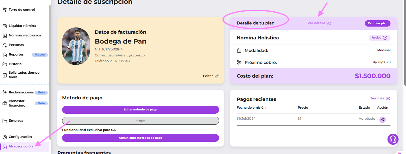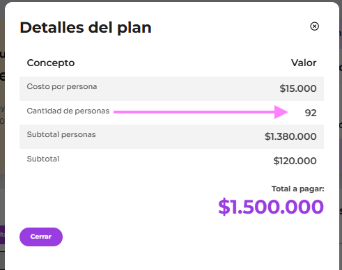 Si en el próximo período liquidas nómina a menos personas, el sistema ajustará automáticamente el plan al rango que corresponda.