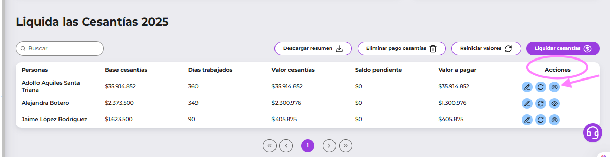 En la columna de Acciones, haz clic en el ícono del ojito (👁) para ver los cálculos detallados.