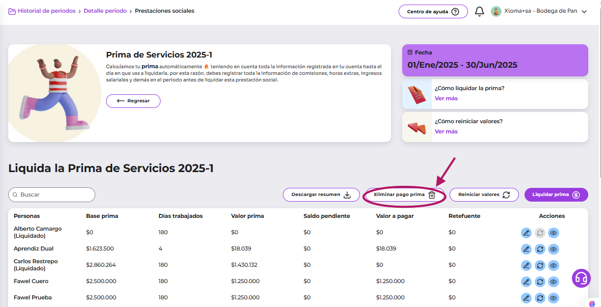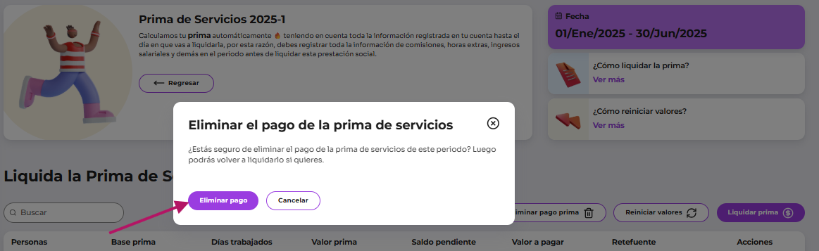 🧹 Elimina una liquidación de Prima de Servicios en Aleluya (en segundos)