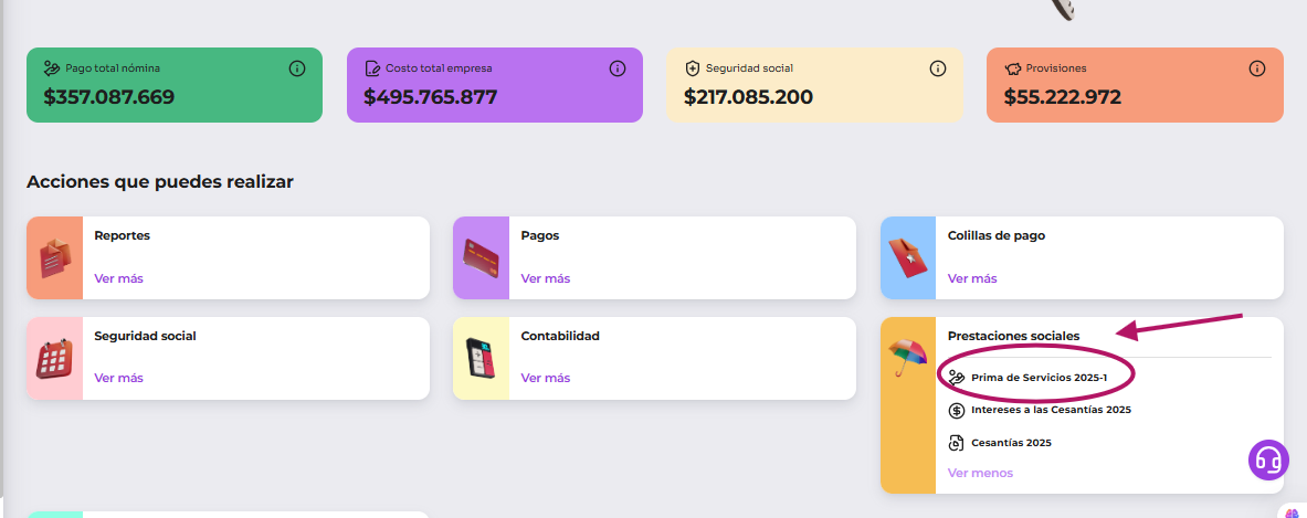 2. Entra a Prestaciones Sociales. Haz clic en Ver más para desplegar las opciones.