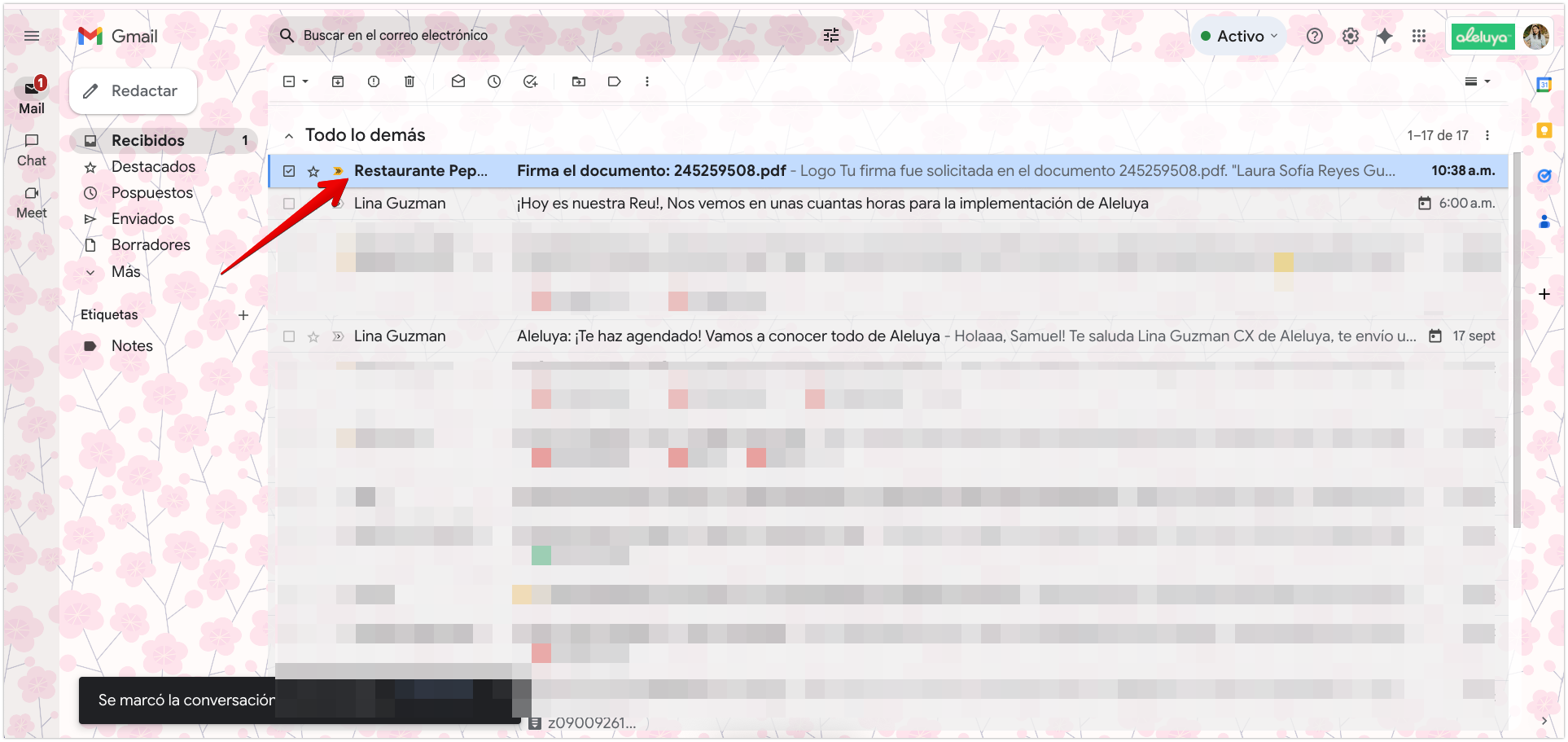 5. A tu empleado le llegará un correo electrónico que debe abrir para la firma.