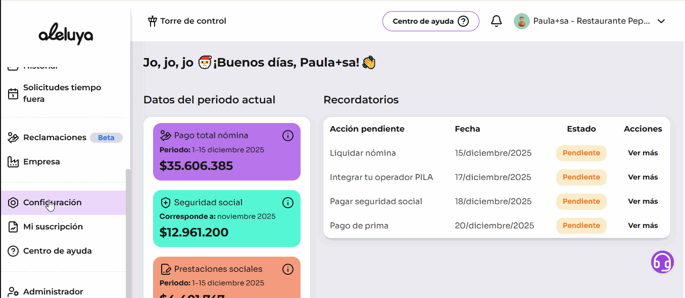 Configura tu cuenta en Aleluya y prepárate para liquidar nómina sin enredos Antes de correr a liquidar la nómina (que en Aleluya se hace en tiempo récord), hay que hacer algo clave: la configuración inicial de tu cuenta. Esto garantiza que todos los ...