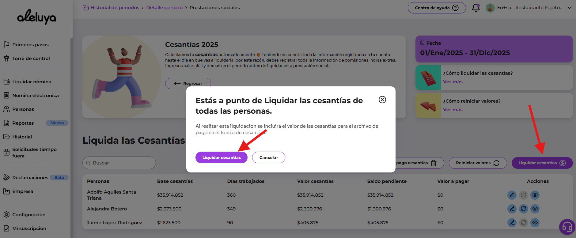 5️⃣ Haz clic nuevamente en Liquidar cesantías para confirmar
